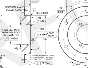Engineering drawings per ANSI / ASME Y14.5